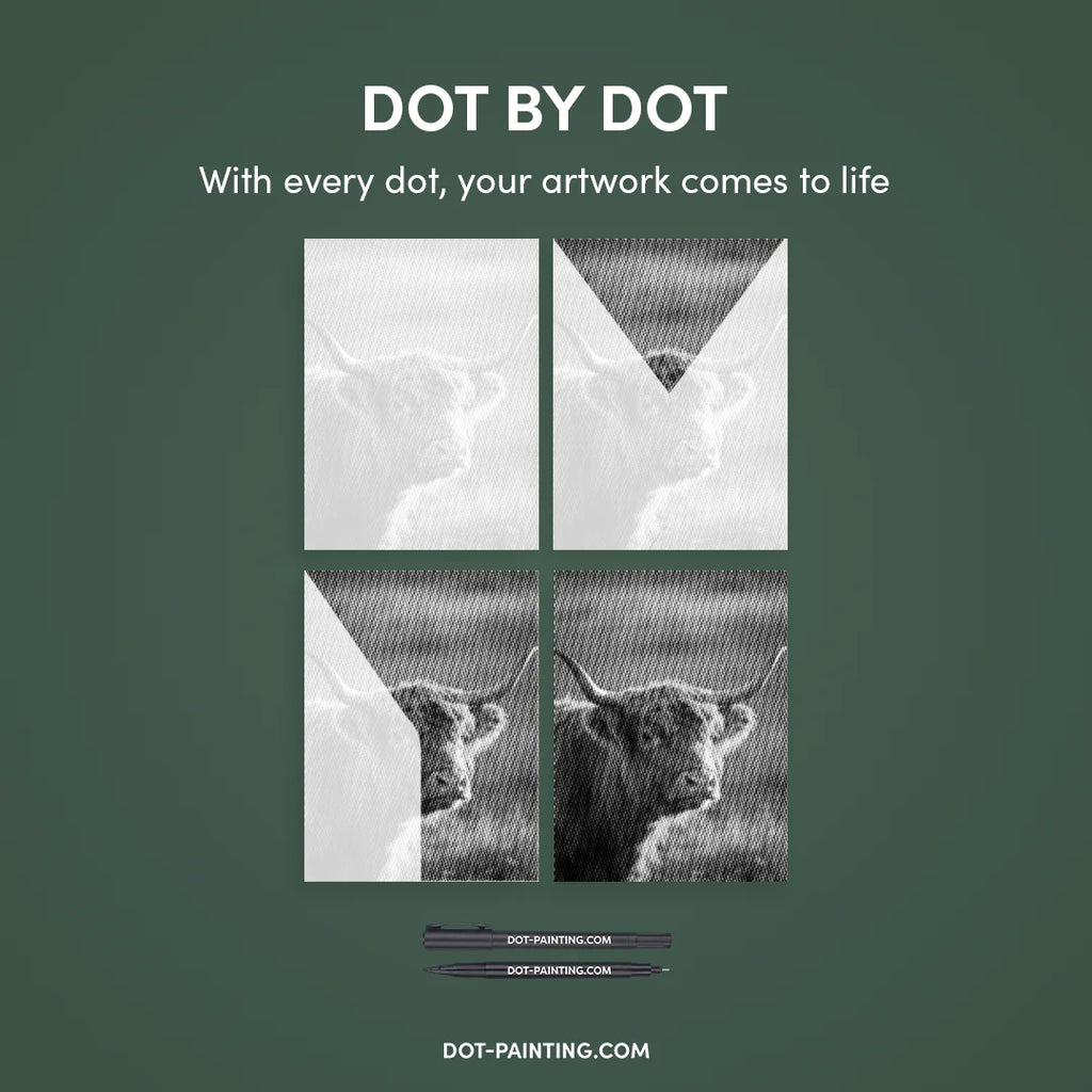 Med prickmålning använder du högkvalitativa pennor för att väcka Schots prickmålningskit till liv, en prick i taget. Det är renare, enklare och otroligt tillfredsställande.