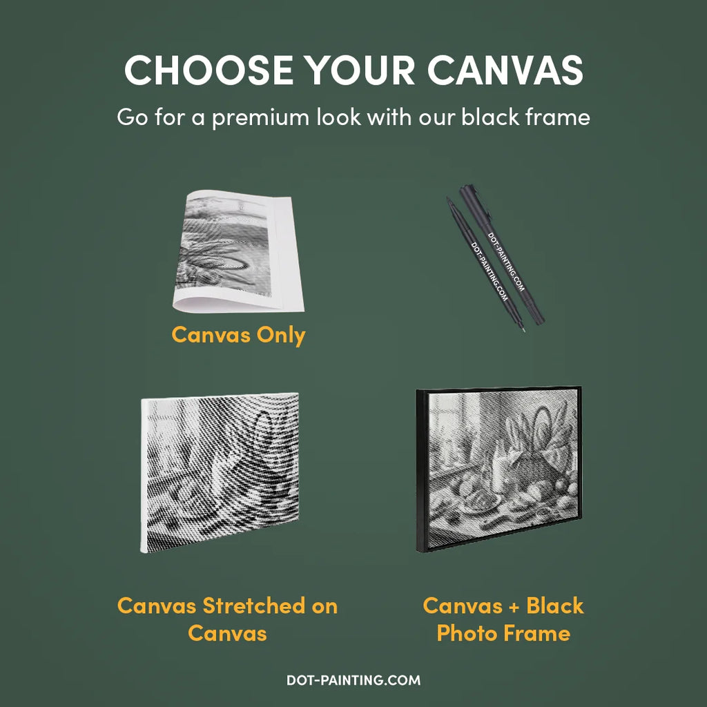- 1x Premiumduk (rullad): Högkvalitativ duk med ditt valda motiv. Vi skickar den rullad i ett hårt rör, aldrig vikt, så att du börjar med en slät, veckfri yta.