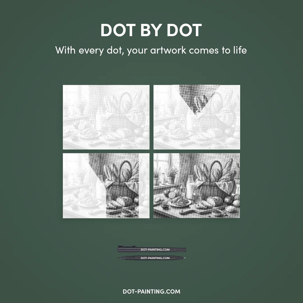- Set med dubbelspetsade pennor: Specialpennor för prickmålning med två sidor: 1,0 mm spets för att fylla större prickar snabbt. 0,5 mm spets för precision och små detaljer.