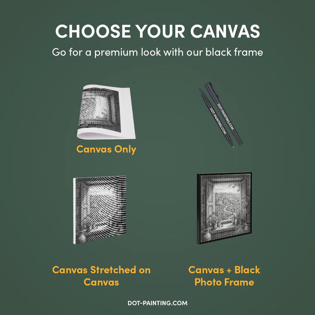 - 1x Premiumduk (rullad): Högkvalitativ duk med ditt valda motiv. Vi skickar den rullad i ett hårt rör, aldrig vikt, så att du börjar med en slät, veckfri yta.